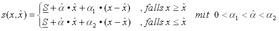 Die a priori festgelegte Funktion s(x,) wird hier aus Gründen der Vereinfachung mit einer Basisentlohnung = 0 definiert. Die Funktion l(x) ist nur exemplarisch vorgegeben und kann im Bedarfsfall entsprechend gestaltet werden.