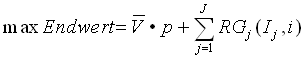 (j, ..., J = einzelne Geschäftsbereiche, RG = Restgewinn, I = Investitionsvolumen)