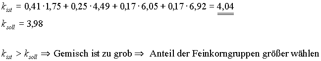 Es kommt zu einer sehr geringen Abweichung in der Probe, wo die Werte übernommen wurden. Es werden anstatt 100% Durchgang beim Normsieb 4mm nur 99,87% erreicht. Diese geringe Abweichung könnte durch verschiedene Ursachen entstanden sein, was für unser Gruppe nicht mehr nachvollzogen werden kann. Es könnte z.B.: zu einer Verunreinigung des Sandes 0/2 durch den genau daneben stehende Kies 2/8 gekommen sein.