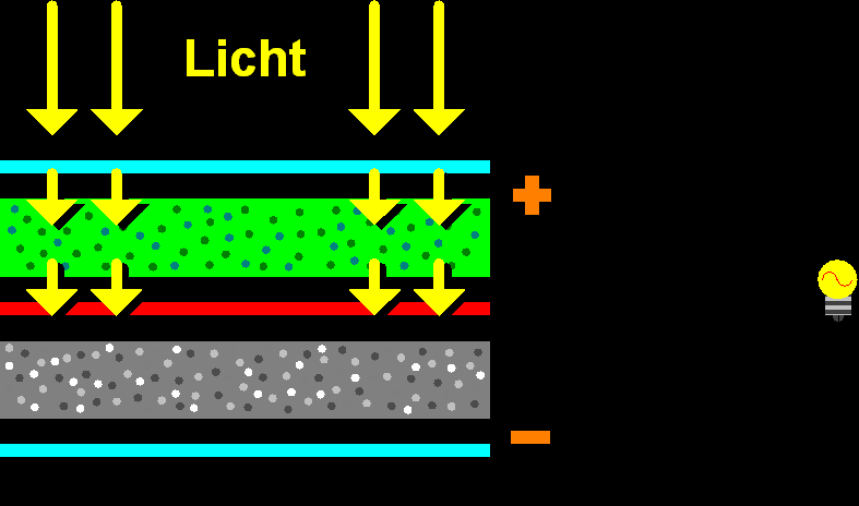 Amorphes Silizium ist also kein hochgereinigtes Silizium, wie es in Halbleiterbauelementen verwendet wird, sondern eine verhältnismäßig "verschmutzte" Substanz, die entsprechend preiswert ist. Solarzellen dieser Art können aus sehr dünnen Halbleiterschichten hergestellt werden (Dünnschicht-Technologie), wodurch eine erhebliche Materialeinsparung ermöglicht wird.