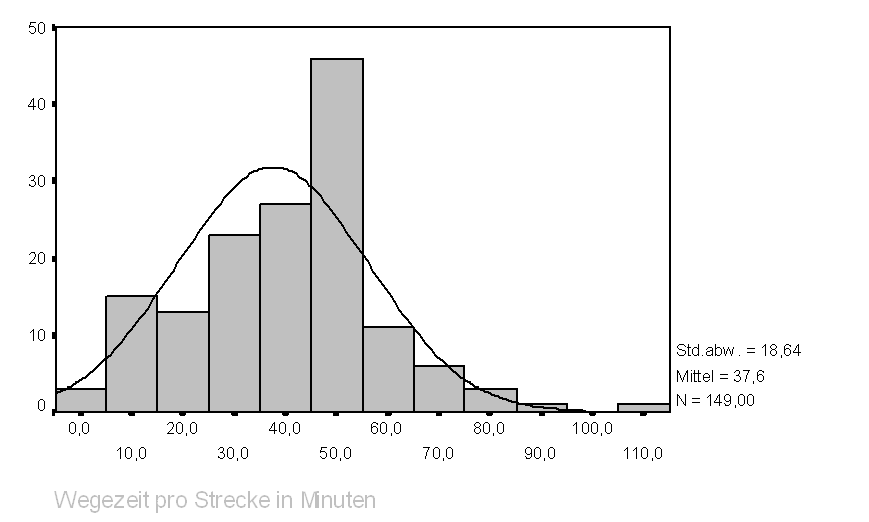 Nullhypothese H0 : Die Wegezeit der FHTW-Studenten zu ihrer Fachhochschule ist normalverteilt